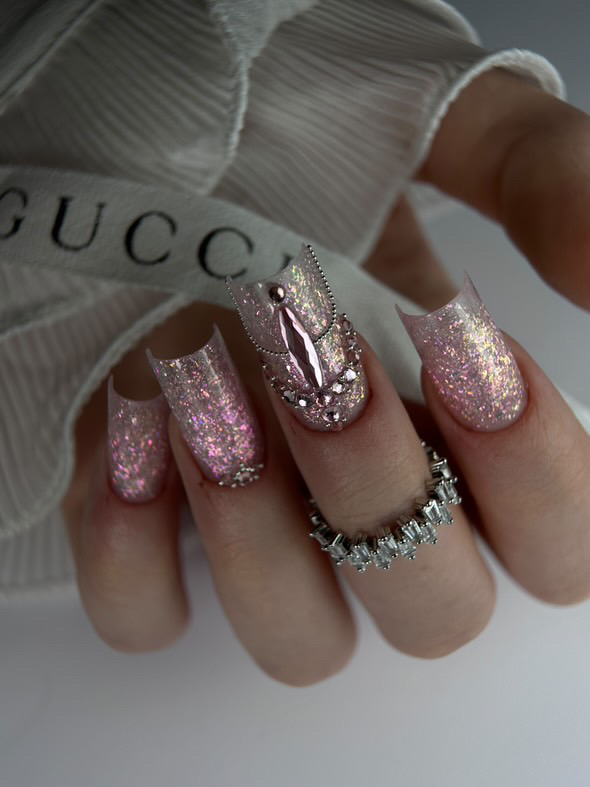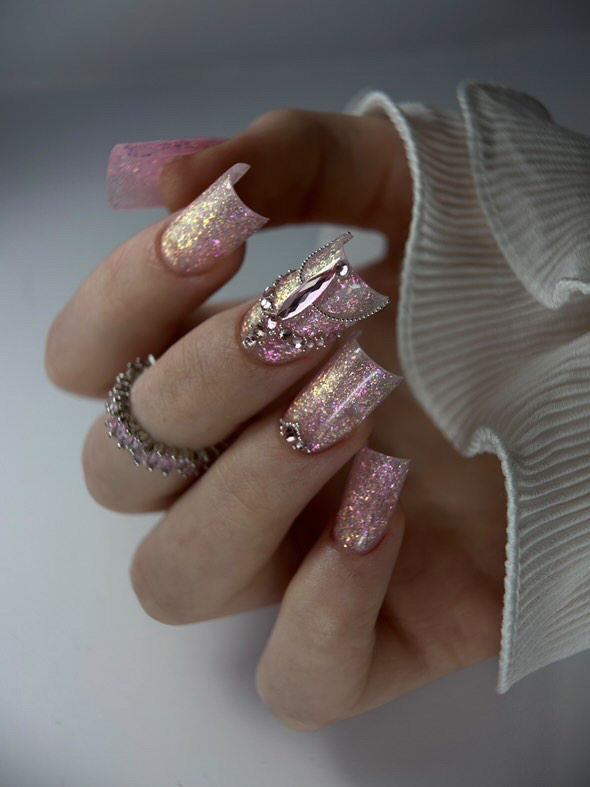 To miłość od pierwszego ruchu pędzla! Romantyczny żel z błyszczącymi drobinkami spodoba się każdemu klientowi.